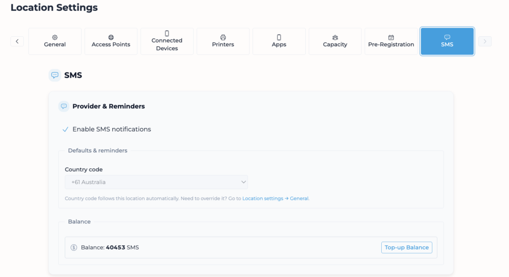 * Problem: SMS not received. * Fix: Ensure the visitor provided a valid mobile number during sign-in. Check your SMS credit balance in Location Settings.