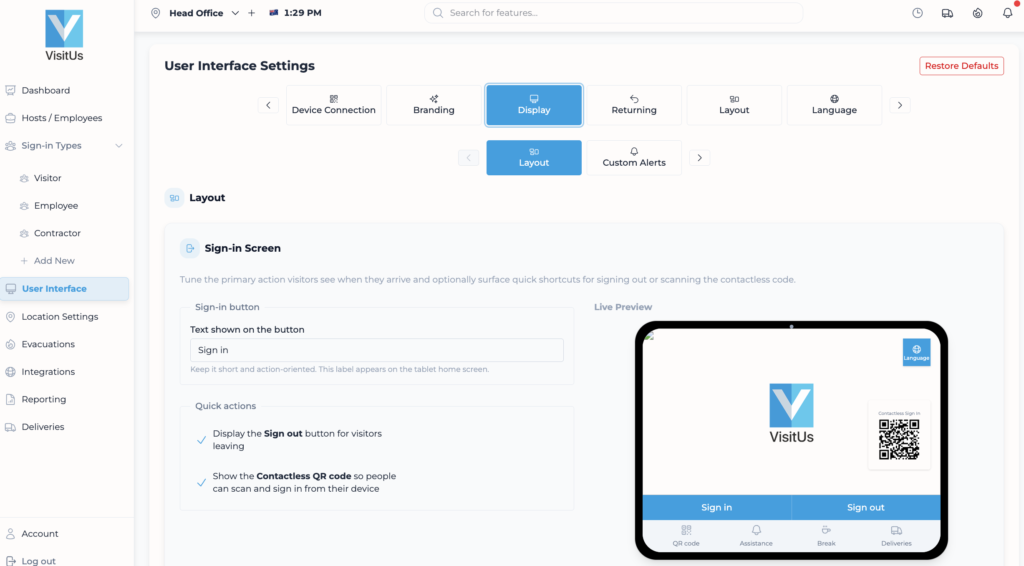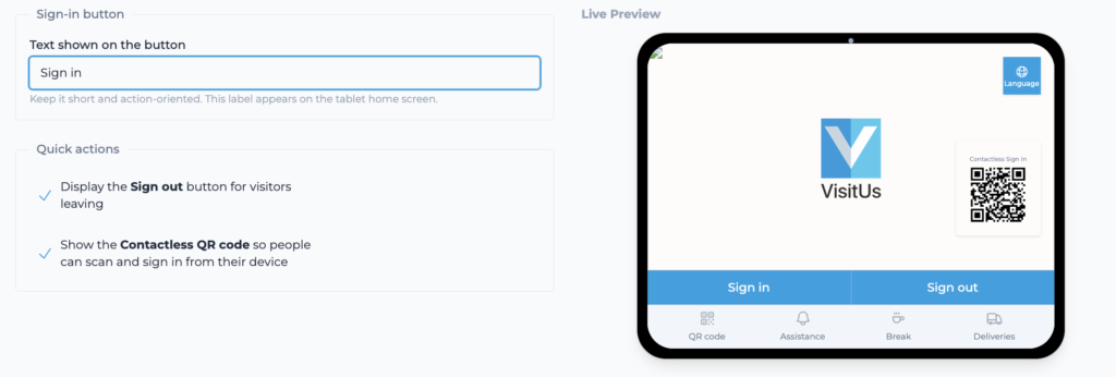 Allow visitors and staff to sign in contactless using their own mobile device by scanning a QR code displayed on the iPad kiosk.